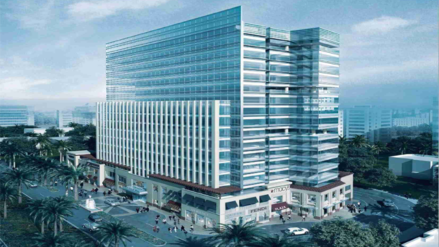 Emaar MGF The Palm Springs Plaza on Golf Course Road, offers luxury offices, retail spaces, and is part of a premium community with villas and apartments.